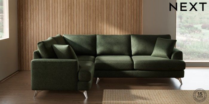 7.2.10 Parker Medium Corner Sofa - Left Hand Boucle Chenille Dark Moss Green High Metal - Chrome | Made Click here to use our website with more accessibility support, for example screen readers
