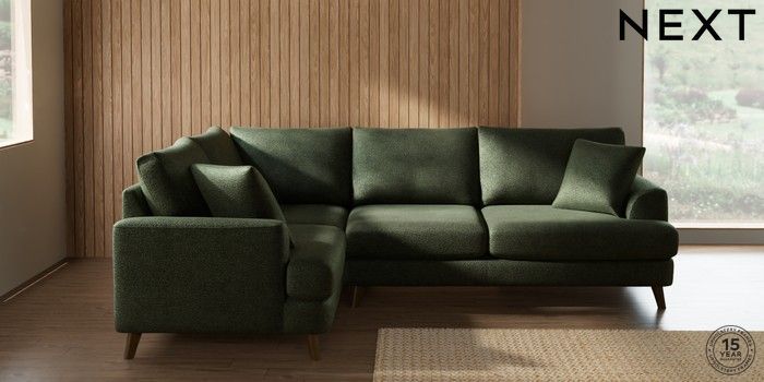 7.2.10 Parker Medium Corner Sofa - Left Hand Boucle Chenille Dark Moss Green Low Retro Tapered - Mid | Made Click here to use our website with more accessibility support, for example screen readers