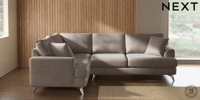 7.2.10 Parker Medium Corner Sofa - Left Hand Boucle Chenille Light Natural High Metal - Chrome | Made Click here to use our website with more accessibility support, for example screen readers