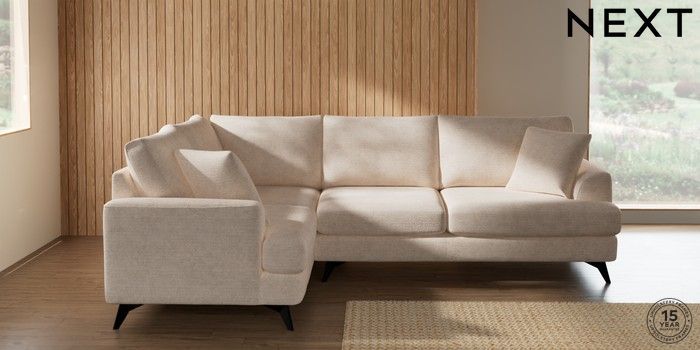 7.2.10 Parker Medium Corner Sofa - Left Hand Boucle Chenille Oyster High Metal - Black | Made Click here to use our website with more accessibility support, for example screen readers