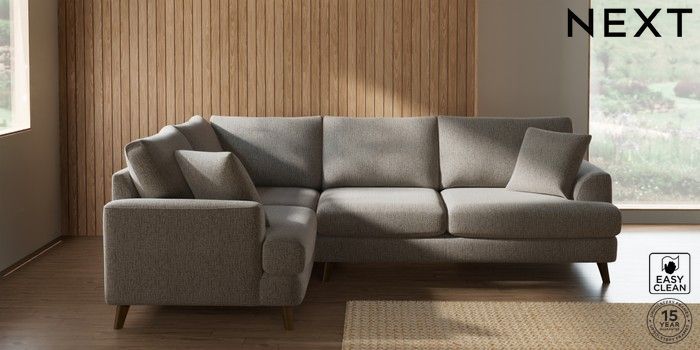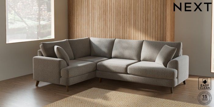 7.2.10 Parker Medium Corner Sofa - Left Hand Chunky Boucle Easy Clean Dove Low Retro Tapered - Mid | Made Click here to use our website with more accessibility support, for example screen readers