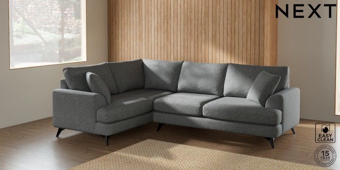 7.2.10 Parker Medium Corner Sofa - Left Hand Chunky Boucle Easy Clean Mid Grey High Metal - Black | Made Click here to use our website with more accessibility support, for example screen readers
