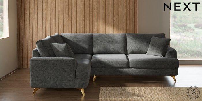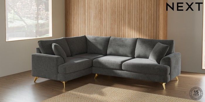 7.2.10 Parker Medium Corner Sofa - Left Hand Chunky Chenille Dark Grey High Metal - Brass | Made Click here to use our website with more accessibility support, for example screen readers