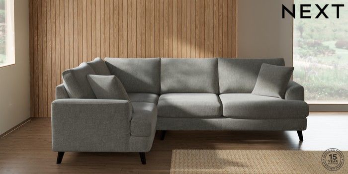 7.2.10 Parker Medium Corner Sofa - Left Hand Chunky Chenille Light Grey Low Retro Tapered - Dark | Made Click here to use our website with more accessibility support, for example screen readers