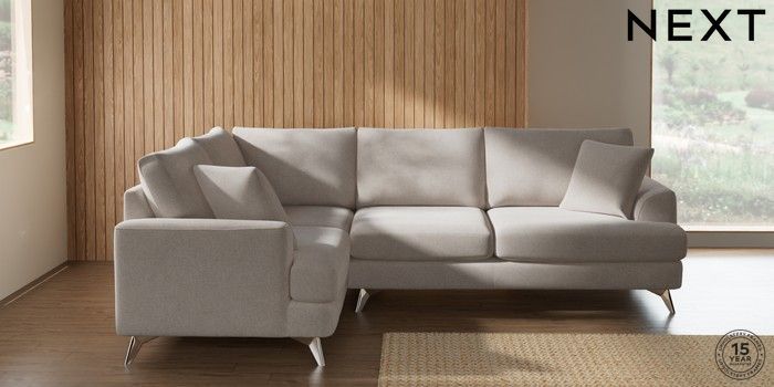 7.2.10 Parker Medium Corner Sofa - Left Hand Chunky Chenille Oyster High Metal - Chrome | Made Click here to use our website with more accessibility support, for example screen readers
