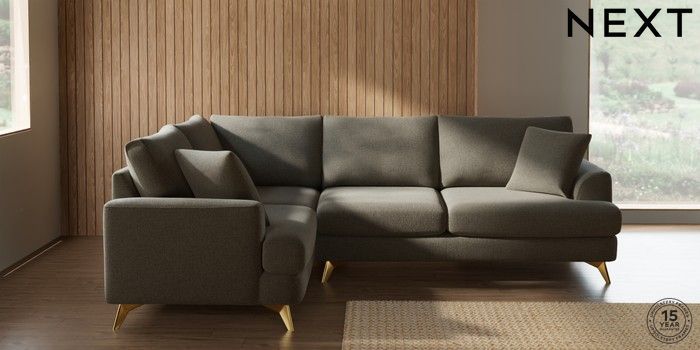 7.2.10 Parker Medium Corner Sofa - Left Hand Chunky Marl Light Olive Green High Metal - Brass | Made Click here to use our website with more accessibility support, for example screen readers