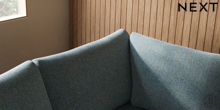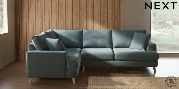 7.2.10 Parker Medium Corner Sofa - Left Hand Chunky Marl Mid Blue Low Retro Tapered - Light | Made Click here to use our website with more accessibility support, for example screen readers