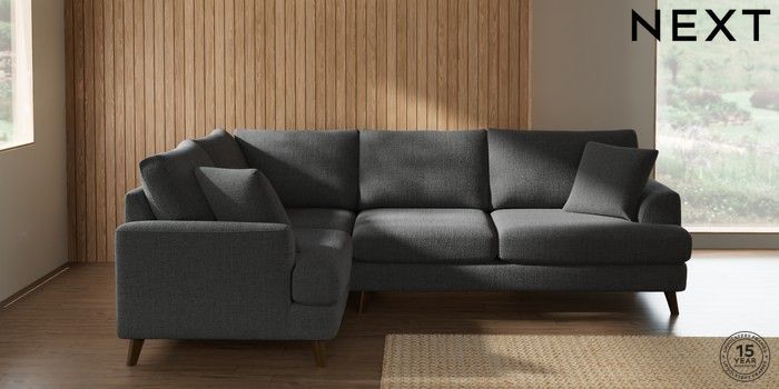 7.2.10 Parker Medium Corner Sofa - Left Hand Chunky Texture Dark Grey Low Retro Tapered - Mid | Made Click here to use our website with more accessibility support, for example screen readers