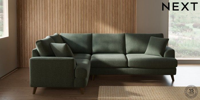 7.2.10 Parker Medium Corner Sofa - Left Hand Chunky Texture Mid Forest Green Low Retro Tapered - Mid | Made Click here to use our website with more accessibility support, for example screen readers