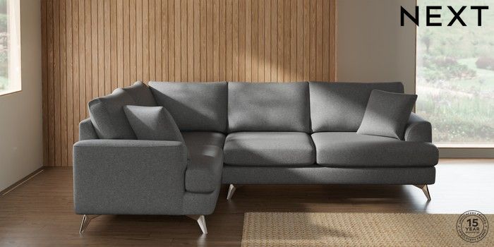 7.2.10 Parker Medium Corner Sofa - Left Hand Chunky Weave Mid Grey High Metal - Chrome | Made Click here to use our website with more accessibility support, for example screen readers