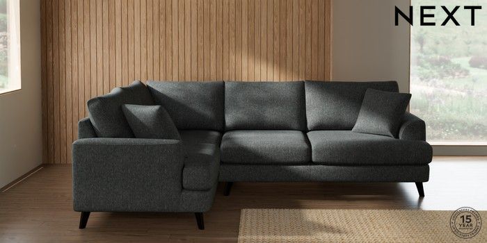 7.2.10 Parker Medium Corner Sofa - Left Hand Cotswold Chenille Dark Grey Low Retro Tapered - Dark | Made Click here to use our website with more accessibility support, for example screen readers