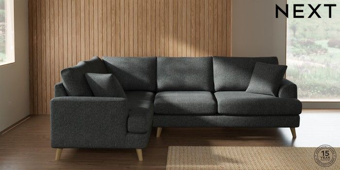 7.2.10 Parker Medium Corner Sofa - Left Hand Cotswold Chenille Dark Grey Low Retro Tapered - Light | Made Click here to use our website with more accessibility support, for example screen readers