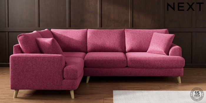 7.2.10 Parker Medium Corner Sofa - Left Hand Cotswold Chenille Dark Raspberry Pink Low Retro Tapered - Light | Made Click here to use our website with more accessibility support, for example screen readers