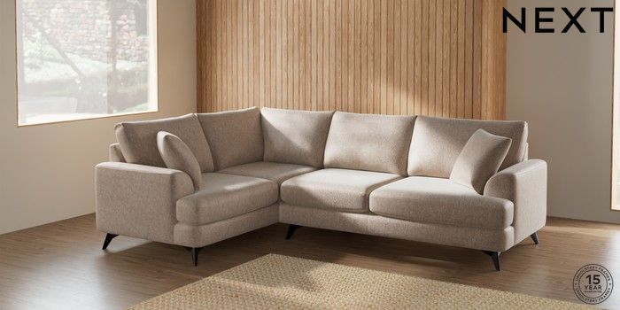 7.2.10 Parker Medium Corner Sofa - Left Hand Cotswold Chenille Light Natural High Metal - Black | Made Click here to use our website with more accessibility support, for example screen readers