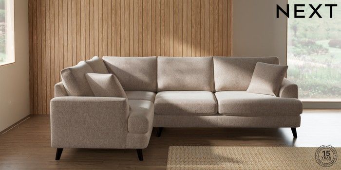 7.2.10 Parker Medium Corner Sofa - Left Hand Cotswold Chenille Light Natural Low Retro Tapered - Dark | Made Click here to use our website with more accessibility support, for example screen readers