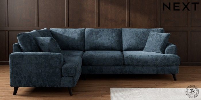 7.2.10 Parker Medium Corner Sofa - Left Hand Distressed Velour Midnight Blue Low Retro Tapered - Dark | Made Click here to use our website with more accessibility support, for example screen readers