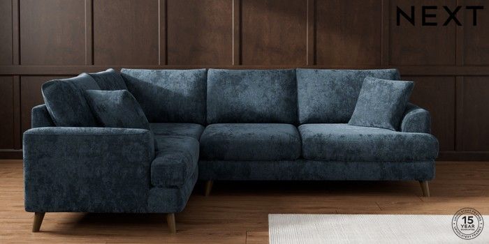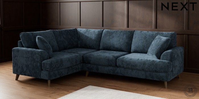 7.2.10 Parker Medium Corner Sofa - Left Hand Distressed Velour Midnight Blue Low Retro Tapered - Mid | Made Click here to use our website with more accessibility support, for example screen readers