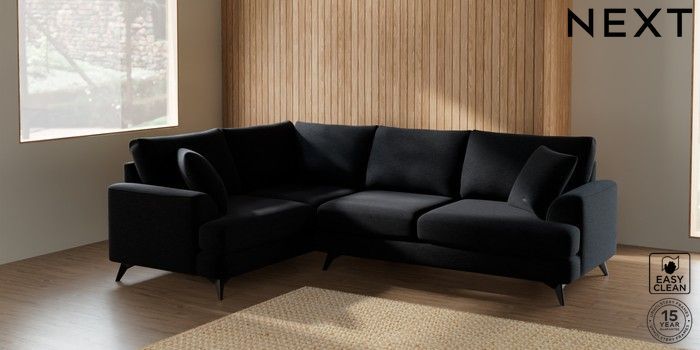 7.2.10 Parker Medium Corner Sofa - Left Hand Fine Chenille Easy Clean Black High Metal - Black | Made Click here to use our website with more accessibility support, for example screen readers