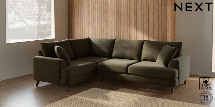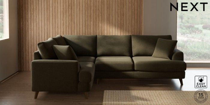 7.2.10 Parker Medium Corner Sofa - Left Hand Fine Chenille Easy Clean Dark Moss Green Low Retro Tapered - Mid | Made Click here to use our website with more accessibility support, for example screen readers