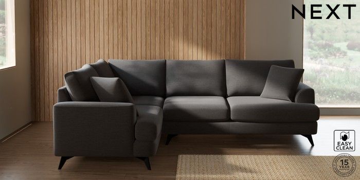 7.2.10 Parker Medium Corner Sofa - Left Hand Fine Chenille Easy Clean Dark Smoke Grey High Metal - Black | Made Click here to use our website with more accessibility support, for example screen readers