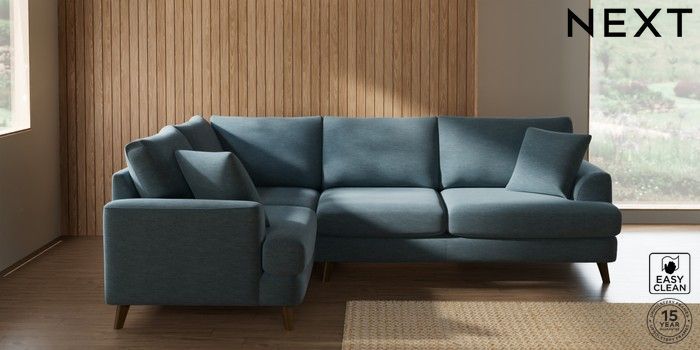 7.2.10 Parker Medium Corner Sofa - Left Hand Fine Chenille Easy Clean Mid Blue Low Retro Tapered - Mid | Made Click here to use our website with more accessibility support, for example screen readers