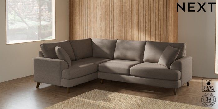 7.2.10 Parker Medium Corner Sofa - Left Hand Fine Chenille Easy Clean Mid Taupe Brown Low Retro Tapered - Mid | Made Click here to use our website with more accessibility support, for example screen readers