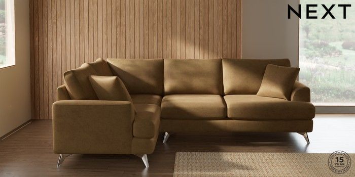 7.2.10 Parker Medium Corner Sofa - Left Hand Luxe Chenille Honey Yellow High Metal - Chrome | Made Click here to use our website with more accessibility support, for example screen readers