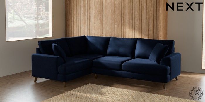 7.2.10 Parker Medium Corner Sofa - Left Hand Luxe Chenille Navy Blue Low Retro Tapered - Mid | Made Click here to use our website with more accessibility support, for example screen readers