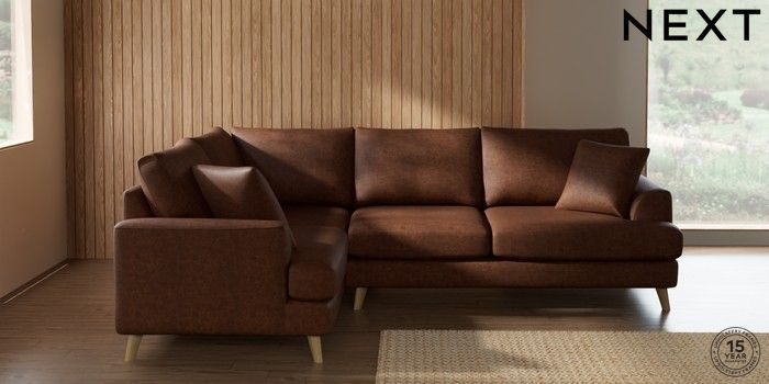 7.2.10 Parker Medium Corner Sofa - Left Hand Monza Faux Leather Easy Clean Chestnut Brown Low Retro Tapered - Light | Made Click here to use our website with more accessibility support, for example screen readers