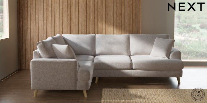 7.2.10 Parker Medium Corner Sofa - Left Hand Multi Weave Oyster Low Retro Tapered - Light | Made Click here to use our website with more accessibility support, for example screen readers
