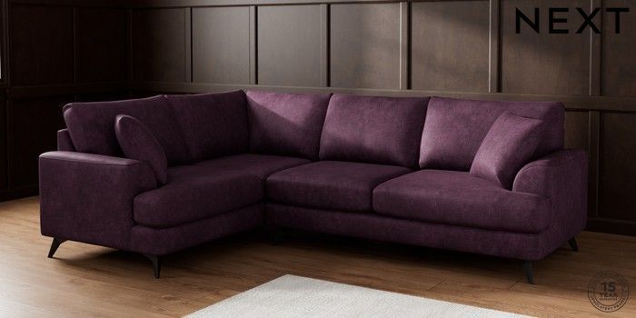 7.2.10 Parker Medium Corner Sofa - Left Hand Plush Chenille Dark Plum Purple High Metal - Black | Made Click here to use our website with more accessibility support, for example screen readers