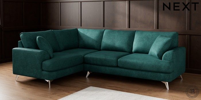 7.2.10 Parker Medium Corner Sofa - Left Hand Plush Chenille Dark Teal Green High Metal - Chrome | Made Click here to use our website with more accessibility support, for example screen readers