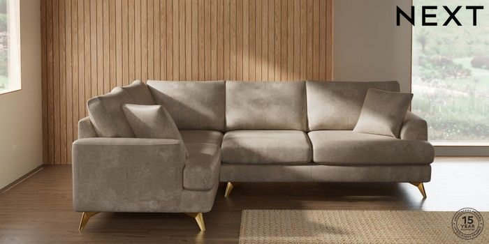 7.2.10 Parker Medium Corner Sofa - Left Hand Plush Chenille Light Natural High Metal - Brass | Made Click here to use our website with more accessibility support, for example screen readers