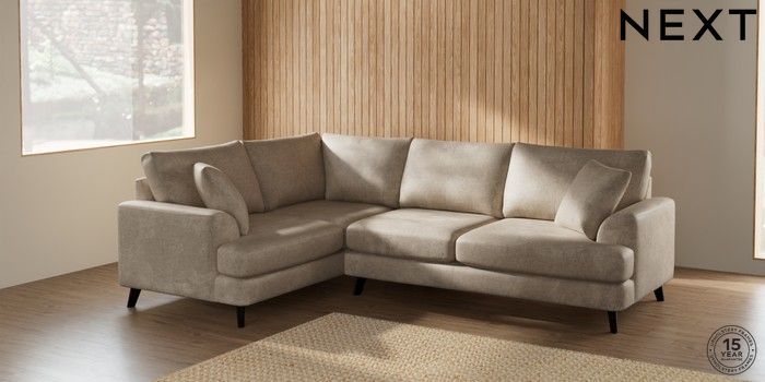 7.2.10 Parker Medium Corner Sofa - Left Hand Plush Chenille Light Natural Low Retro Tapered - Dark | Made Click here to use our website with more accessibility support, for example screen readers