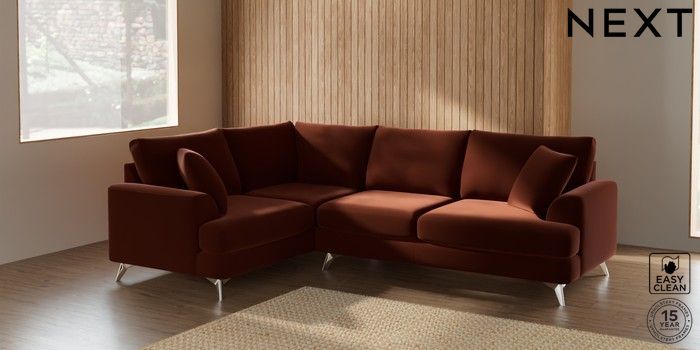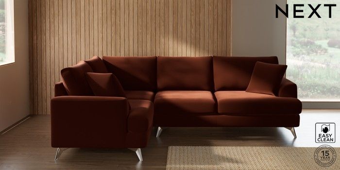 7.2.10 Parker Medium Corner Sofa - Left Hand Plush Velvet Easy Clean Ginger Orange High Metal - Chrome | Made Click here to use our website with more accessibility support, for example screen readers