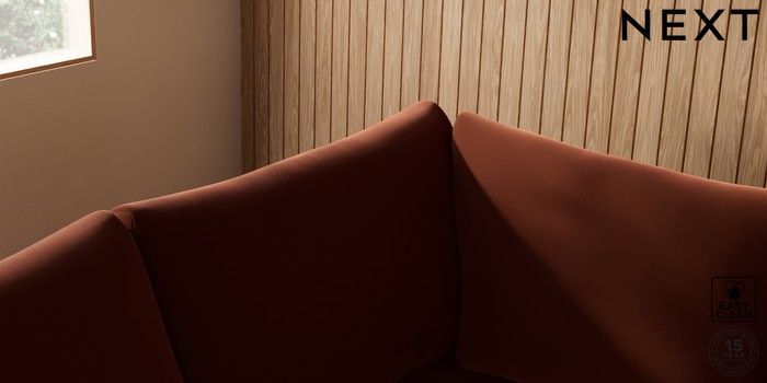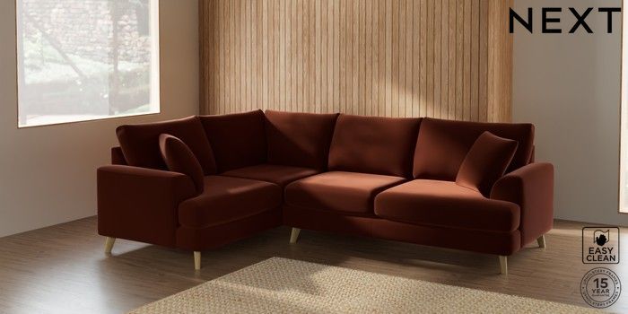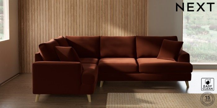 7.2.10 Parker Medium Corner Sofa - Left Hand Plush Velvet Easy Clean Ginger Orange Low Retro Tapered - Light | Made Click here to use our website with more accessibility support, for example screen readers