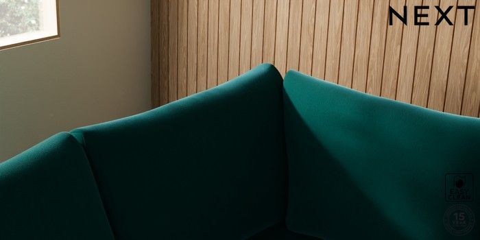 7.2.10 Parker Medium Corner Sofa - Left Hand Plush Velvet Easy Clean Juniper Green Low Retro Tapered - Dark | Made Click here to use our website with more accessibility support, for example screen readers