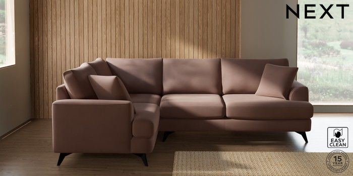 7.2.10 Parker Medium Corner Sofa - Left Hand Plush Velvet Easy Clean Mid Natural High Metal - Black | Made Click here to use our website with more accessibility support, for example screen readers