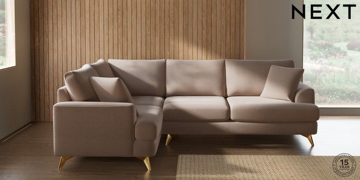 7.2.10 Parker Medium Corner Sofa - Left Hand Relaxed Linen Look Mid Natural High Metal - Brass | Made Click here to use our website with more accessibility support, for example screen readers