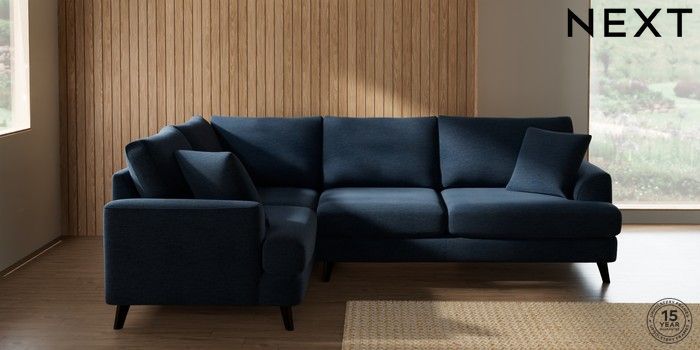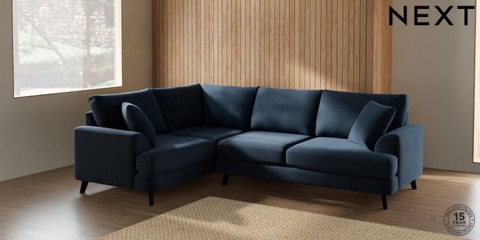 7.2.10 Parker Medium Corner Sofa - Left Hand Ripple Chenille Dark Blue Low Retro Tapered - Dark | Made Click here to use our website with more accessibility support, for example screen readers