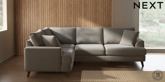 7.2.10 Parker Medium Corner Sofa - Left Hand Ripple Chenille Light Natural Low Retro Tapered - Mid | Made Click here to use our website with more accessibility support, for example screen readers