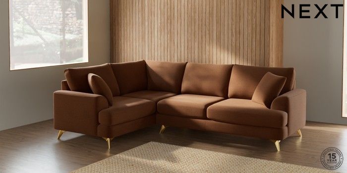 7.2.10 Parker Medium Corner Sofa - Left Hand Ripple Chenille Mid Rust Brown High Metal - Brass | Made Click here to use our website with more accessibility support, for example screen readers