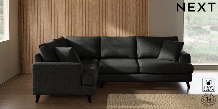 7.2.10 Parker Medium Corner Sofa - Left Hand Tweedy Blend Easy Clean Charcoal Grey Low Retro Tapered - Dark | Made Click here to use our website with more accessibility support, for example screen readers