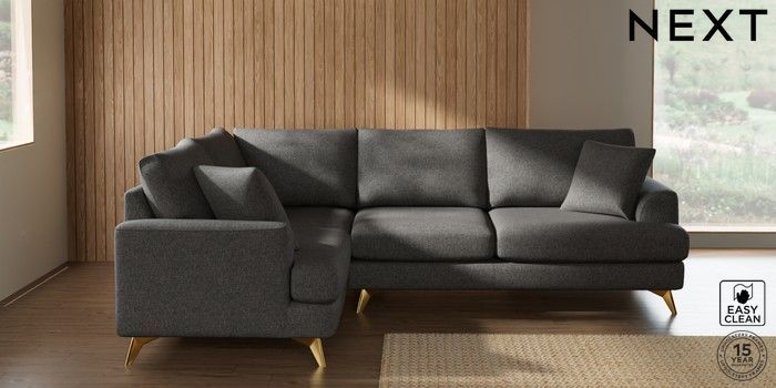 7.2.10 Parker Medium Corner Sofa - Left Hand Tweedy Blend Easy Clean Dark Grey High Metal - Brass | Made Click here to use our website with more accessibility support, for example screen readers