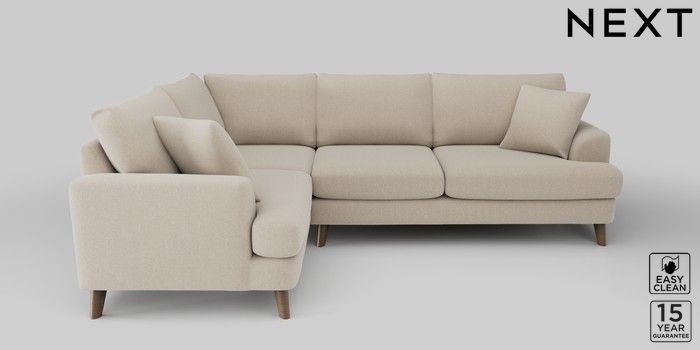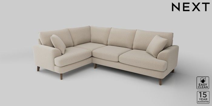 7.2.10 Parker Medium Corner Sofa - Left Hand Tweedy Blend Easy Clean Oyster Low Retro Tapered - Mid | Made Click here to use our website with more accessibility support, for example screen readers