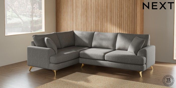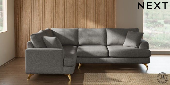 7.2.10 Parker Medium Corner Sofa - Left Hand Tweedy Chenille Mid Grey High Metal - Brass | Made Click here to use our website with more accessibility support, for example screen readers