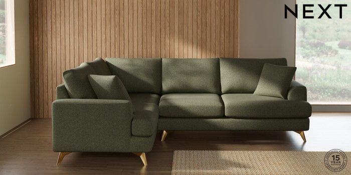 7.2.10 Parker Medium Corner Sofa - Left Hand Tweedy Chenille Mid Moss Green High Metal - Brass | Made Click here to use our website with more accessibility support, for example screen readers