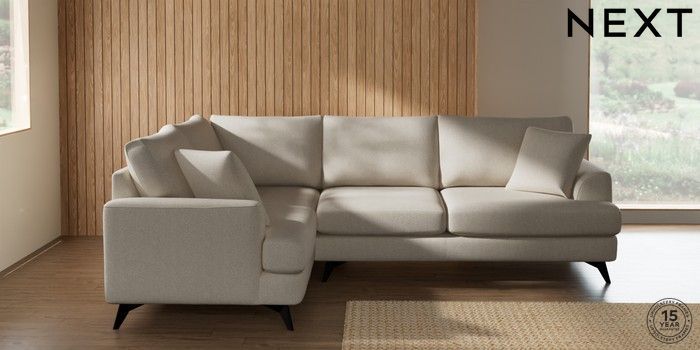 7.2.10 Parker Medium Corner Sofa - Left Hand Tweedy Chenille Oyster High Metal - Black | Made Click here to use our website with more accessibility support, for example screen readers