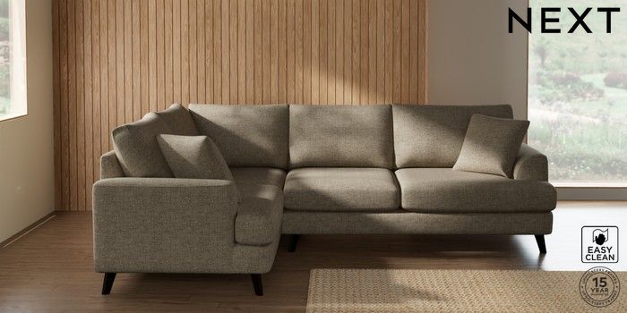 7.2.10 Parker Medium Corner Sofa - Left Hand Woven Chenille Easy Clean Mid Natural Low Retro Tapered - Dark | Made Click here to use our website with more accessibility support, for example screen readers