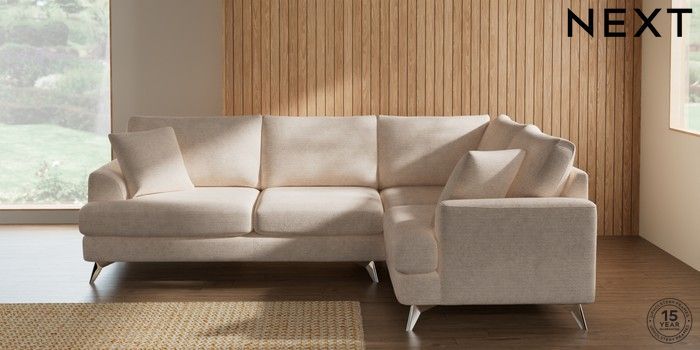 7.2.10 Parker Medium Corner Sofa - Right Hand Boucle Chenille Oyster High Metal - Chrome | Made Click here to use our website with more accessibility support, for example screen readers